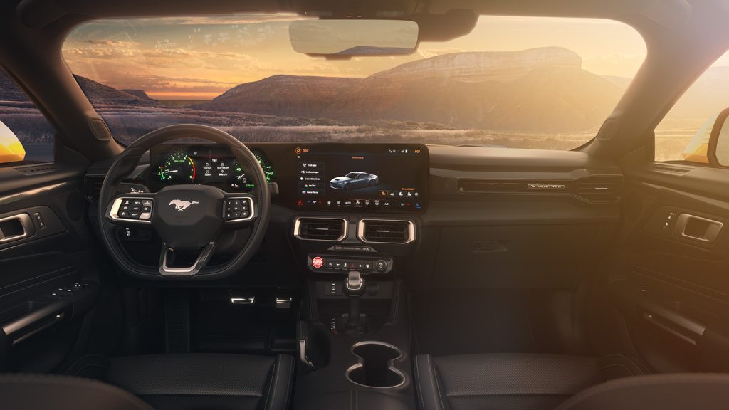 Inspirisan Mustangom® prve generacije, potpuno novi Mustang® ima elegantnu siluetu i mišićav stav. Poseduje prepoznatljivu rešetku sa Mustang® znakom, i tri-bar LED farovima. Vozilo je opremljeno 19” aluminijumski naplatcima kao i Brembo™ “performance” kočionim čeljustima.